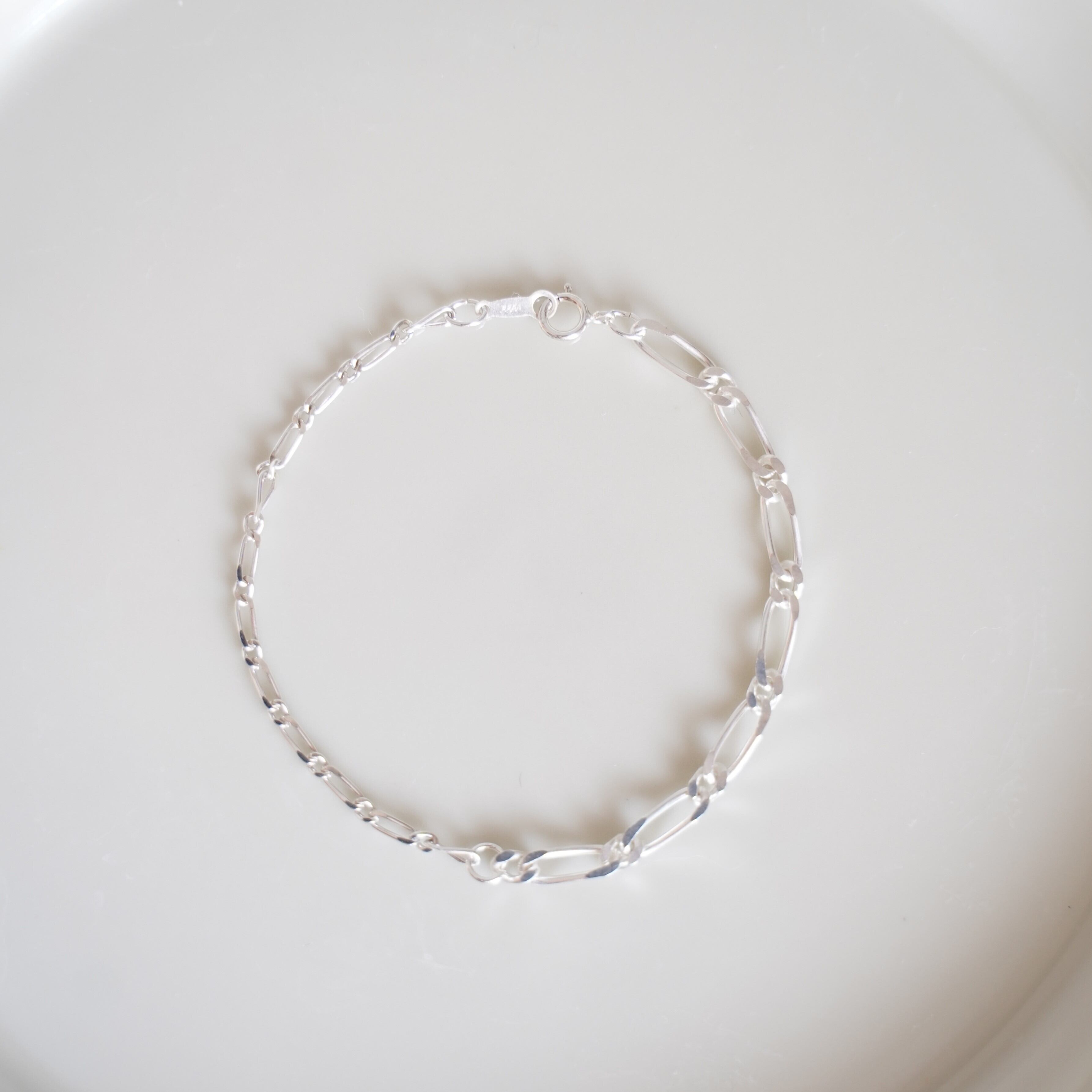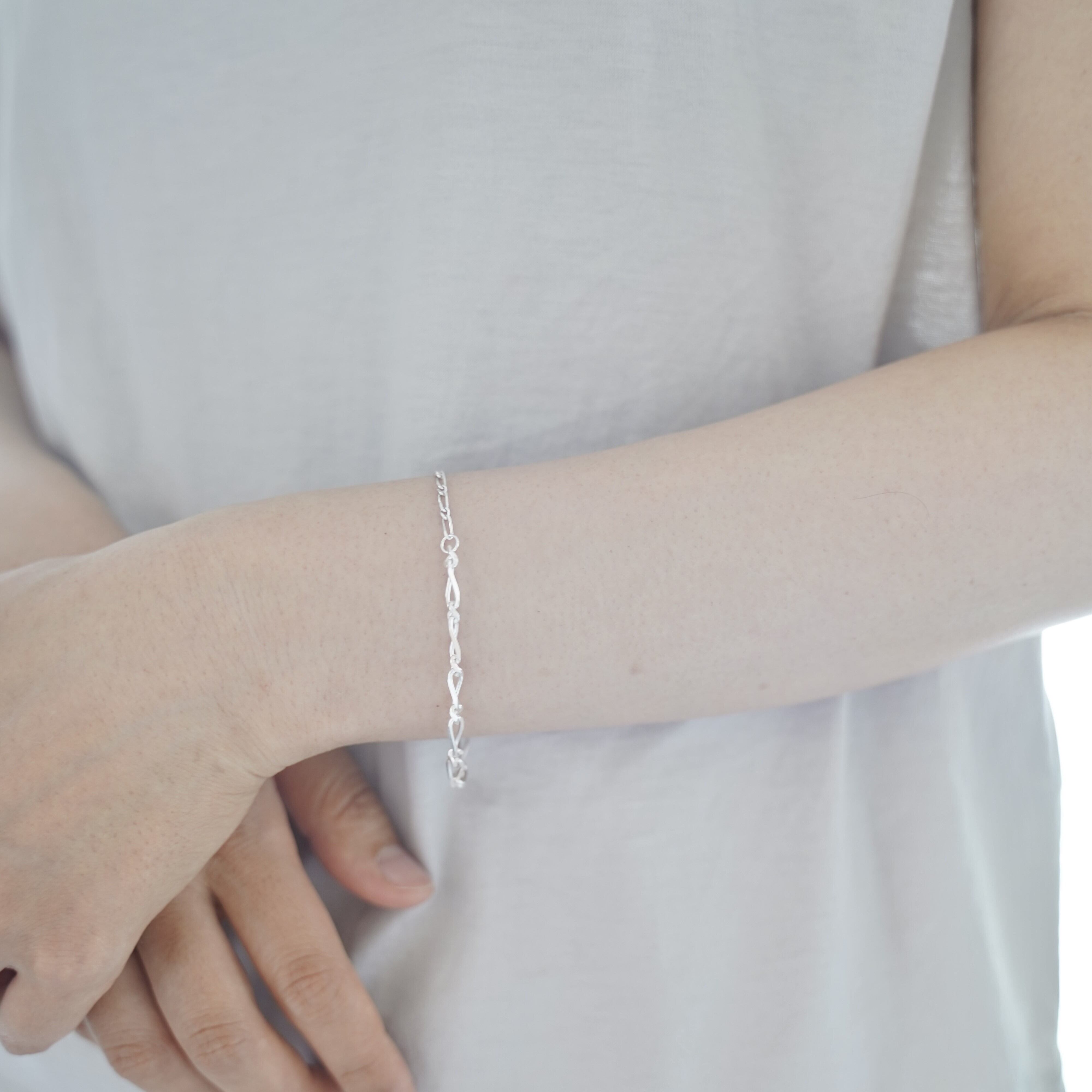 雰囲気の違う2つを組み合わせたこのブレスレットは、どんなコーデにもすっとなじみます。