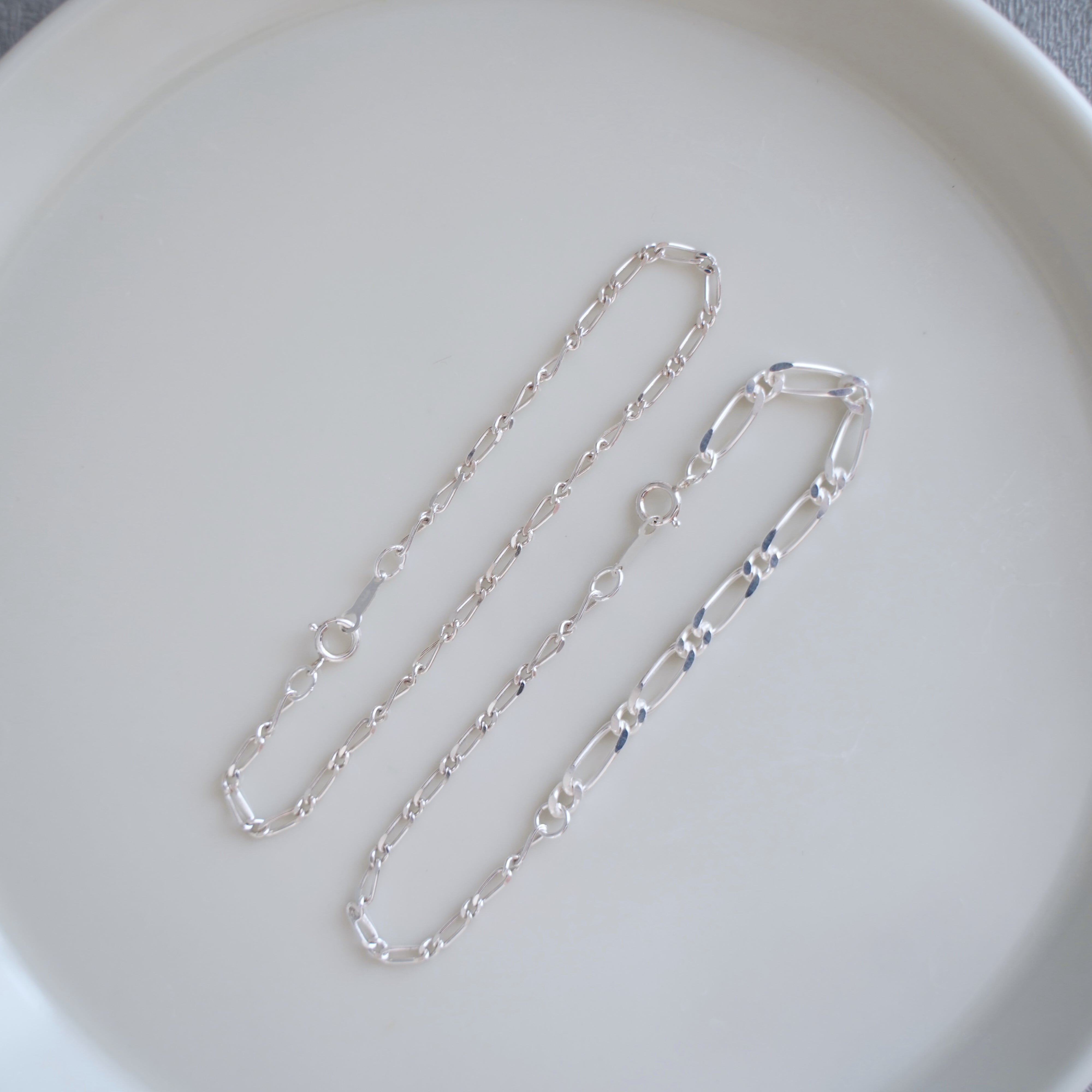 上品な細めのチェーンと、抜け感のあるカジュアルな太めのチェーン。
