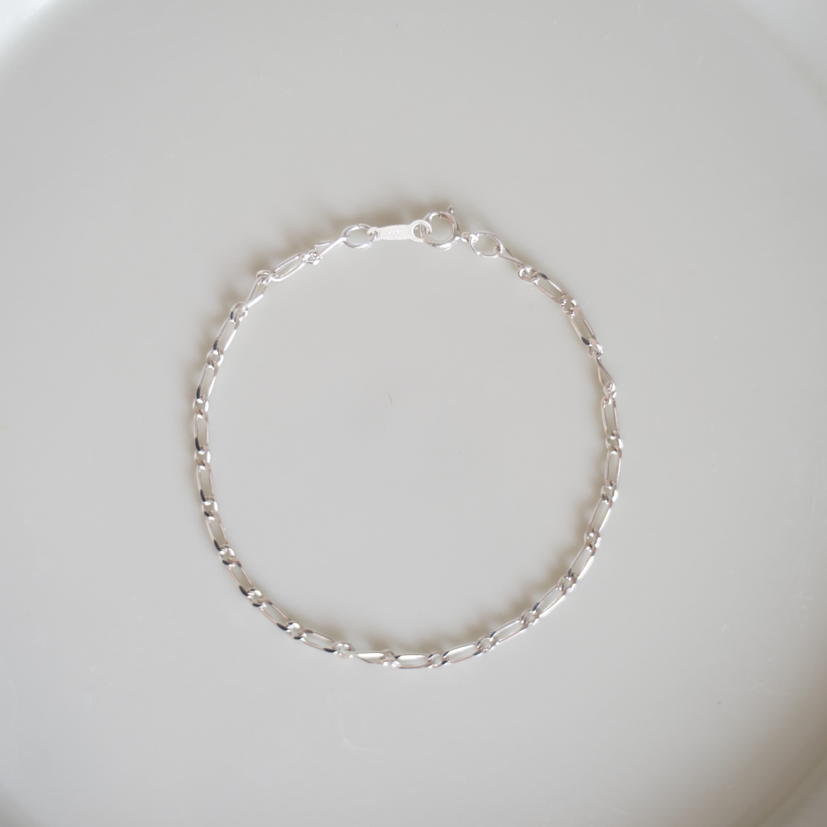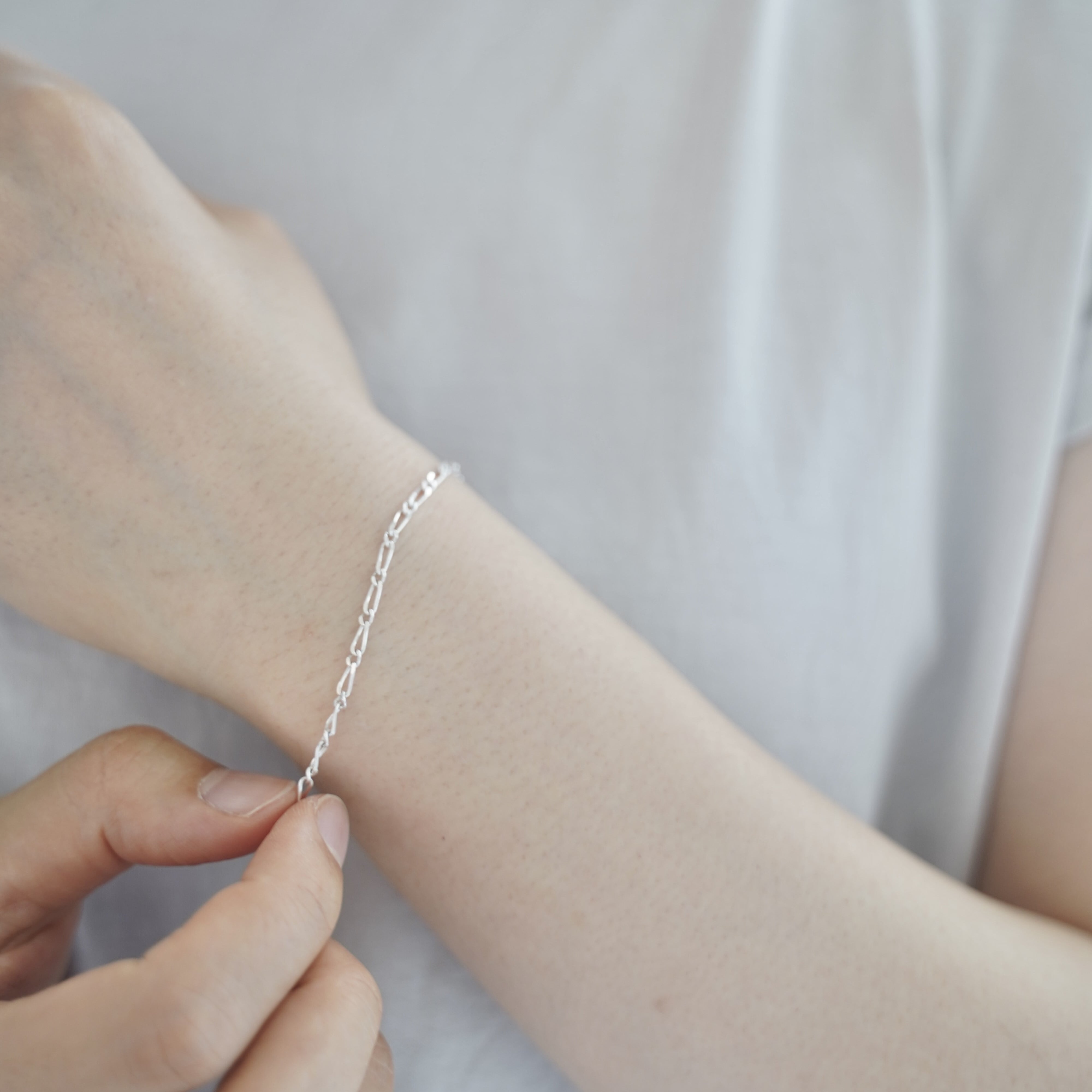 細やかなカットが光を受けてきらりと反射する、繊細なチェーンブレス。