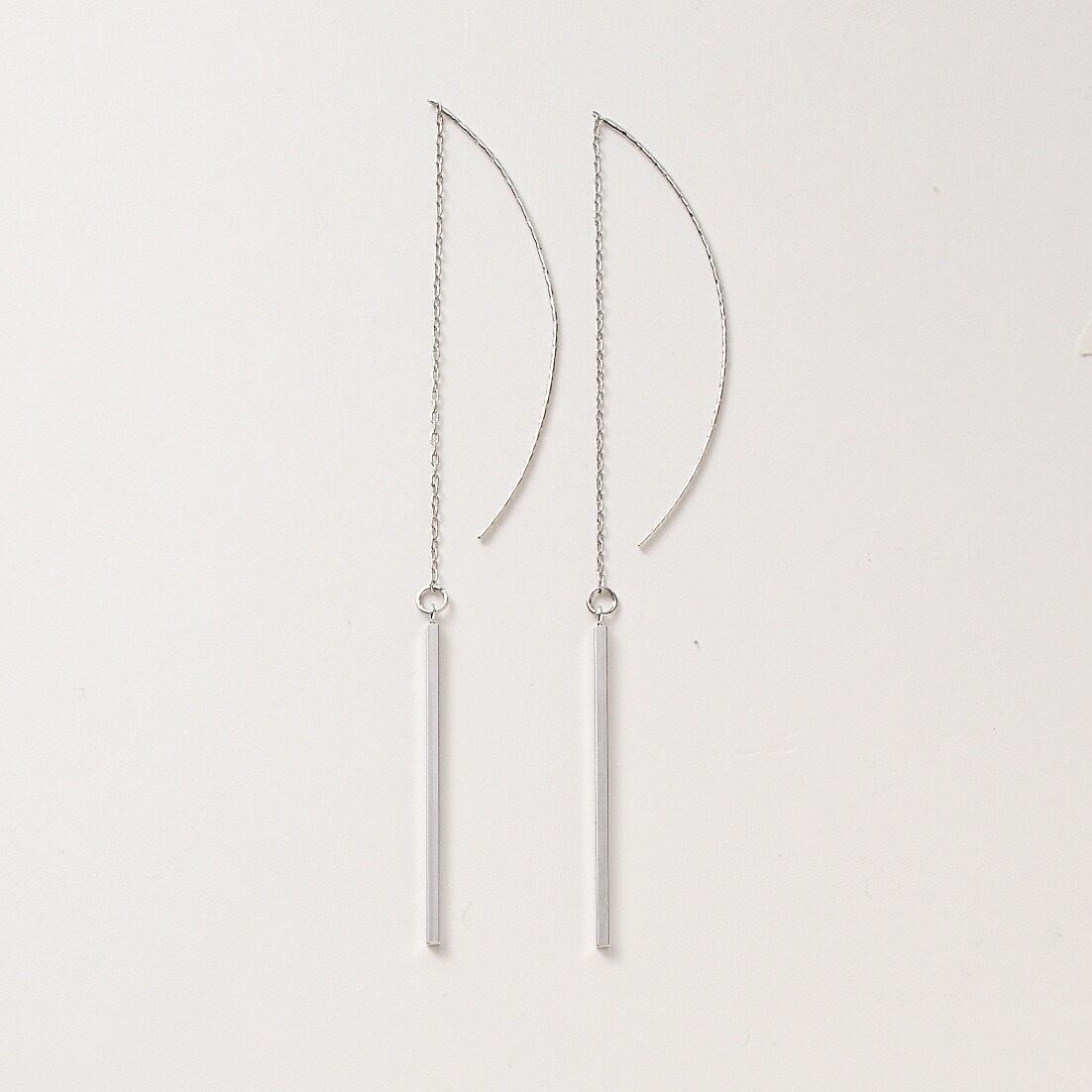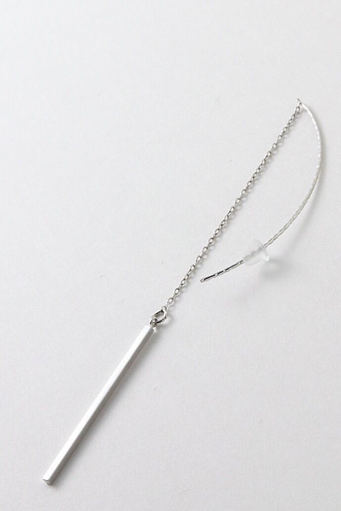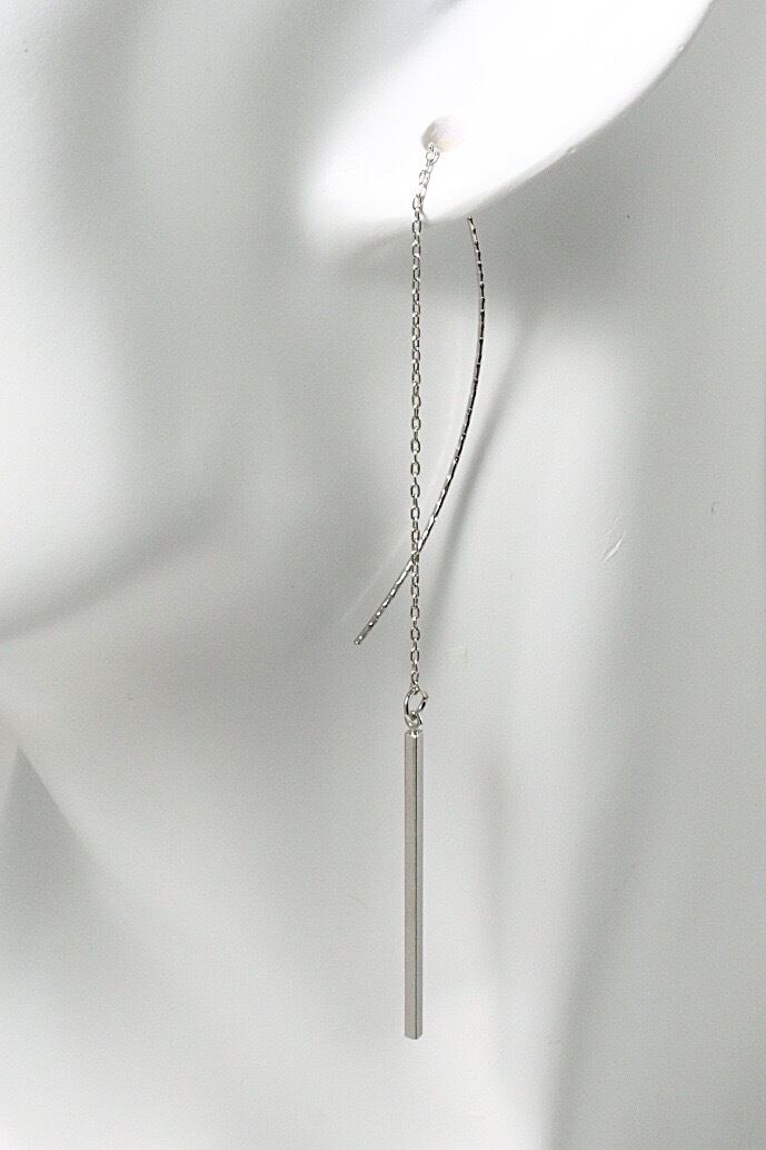ヌーディなシルバーカラーのバーが揺れる、お洒落なアメリカンピアス。