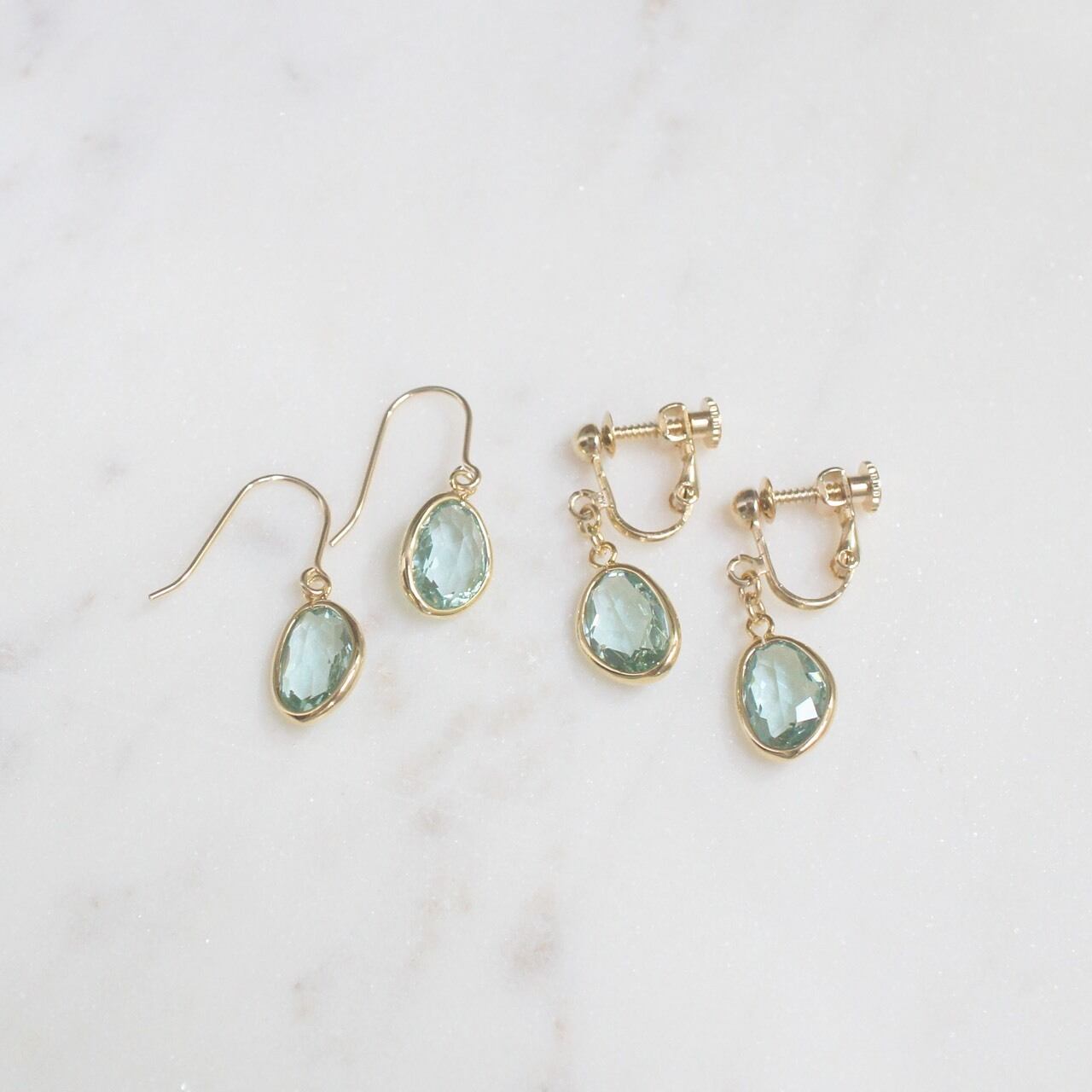 トロンとした変形ドロップ型フレームに澄み切った透明感のあるカットグラスが輝きます。