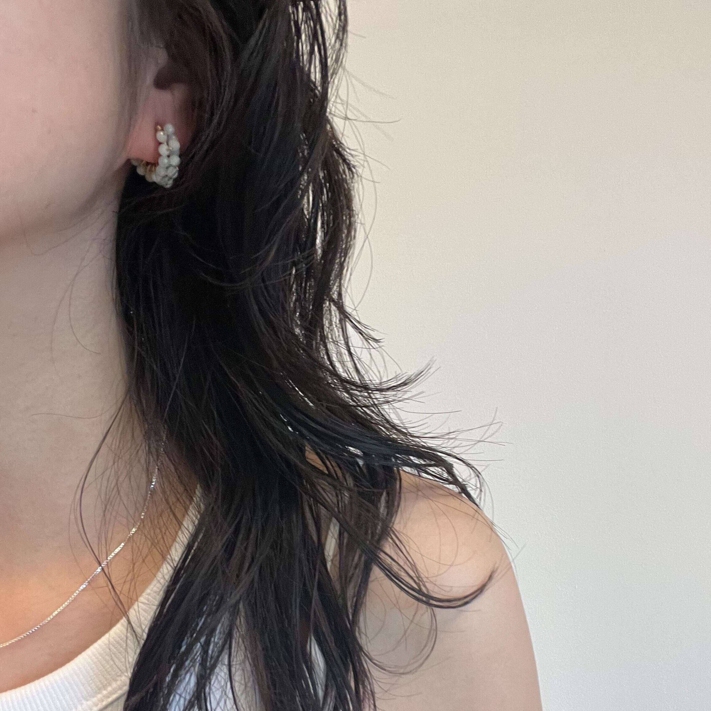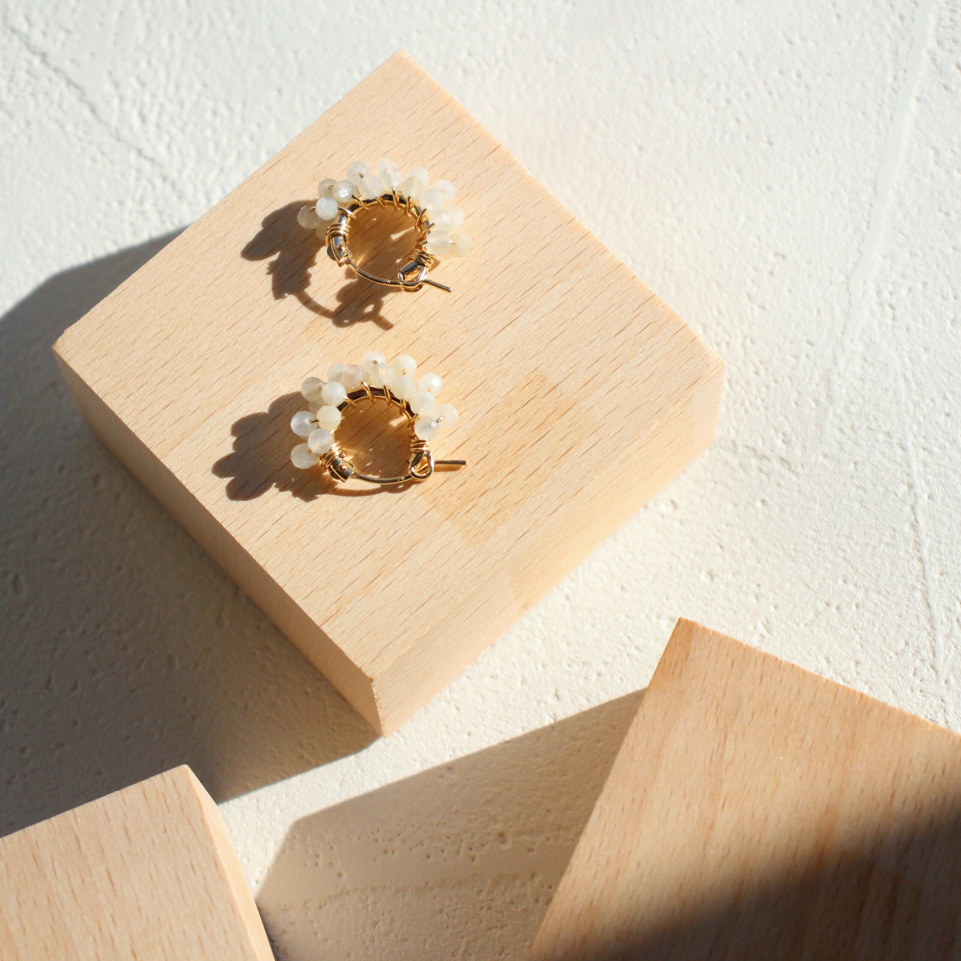 ムーンストーンを巻き付けたフープピアス。
