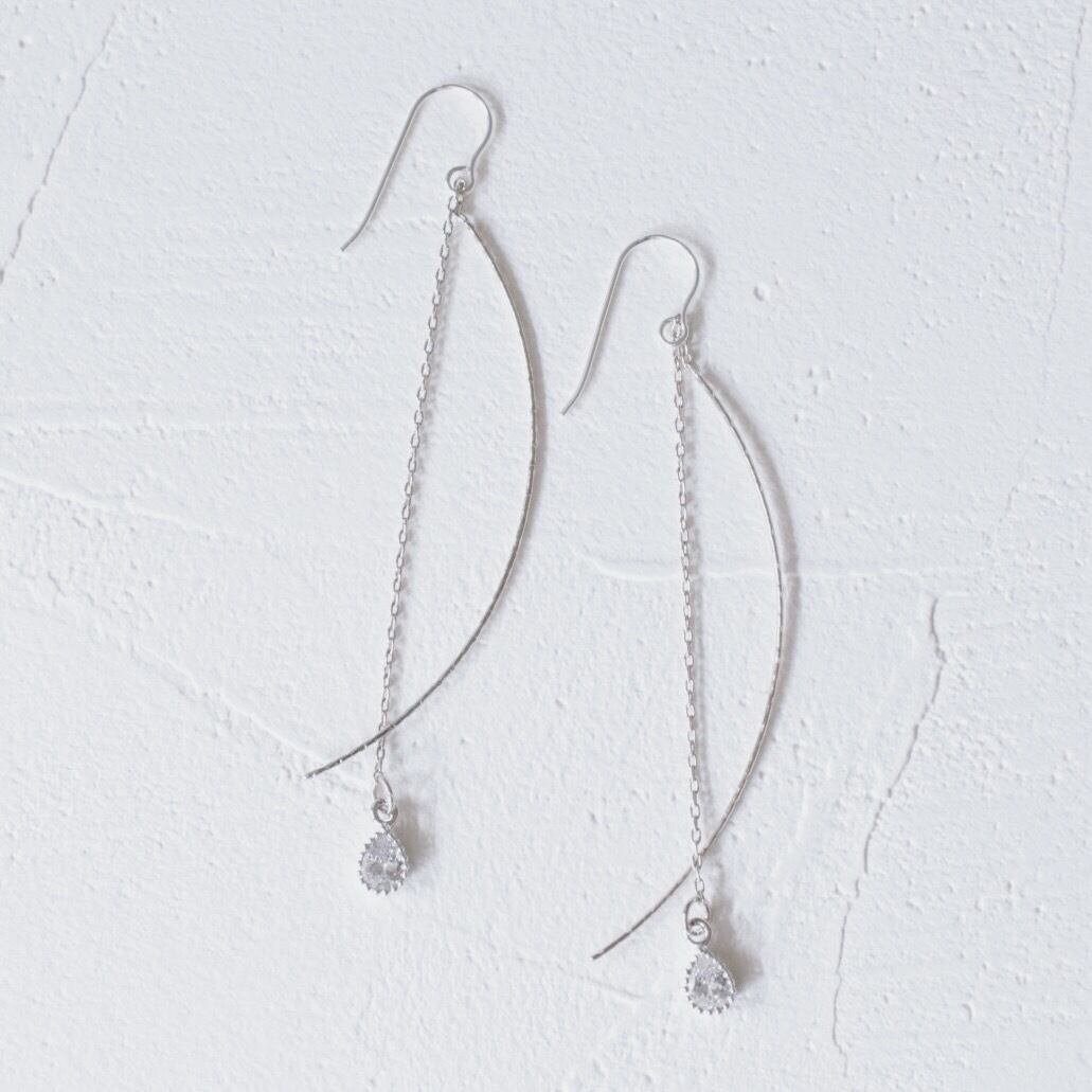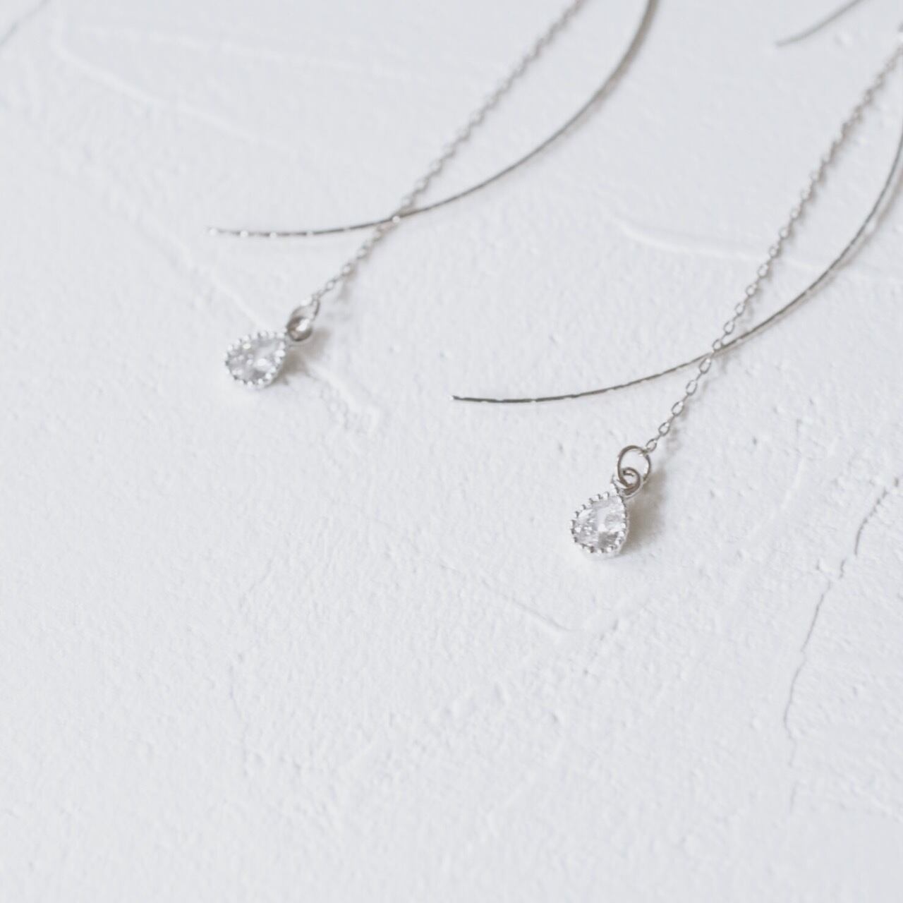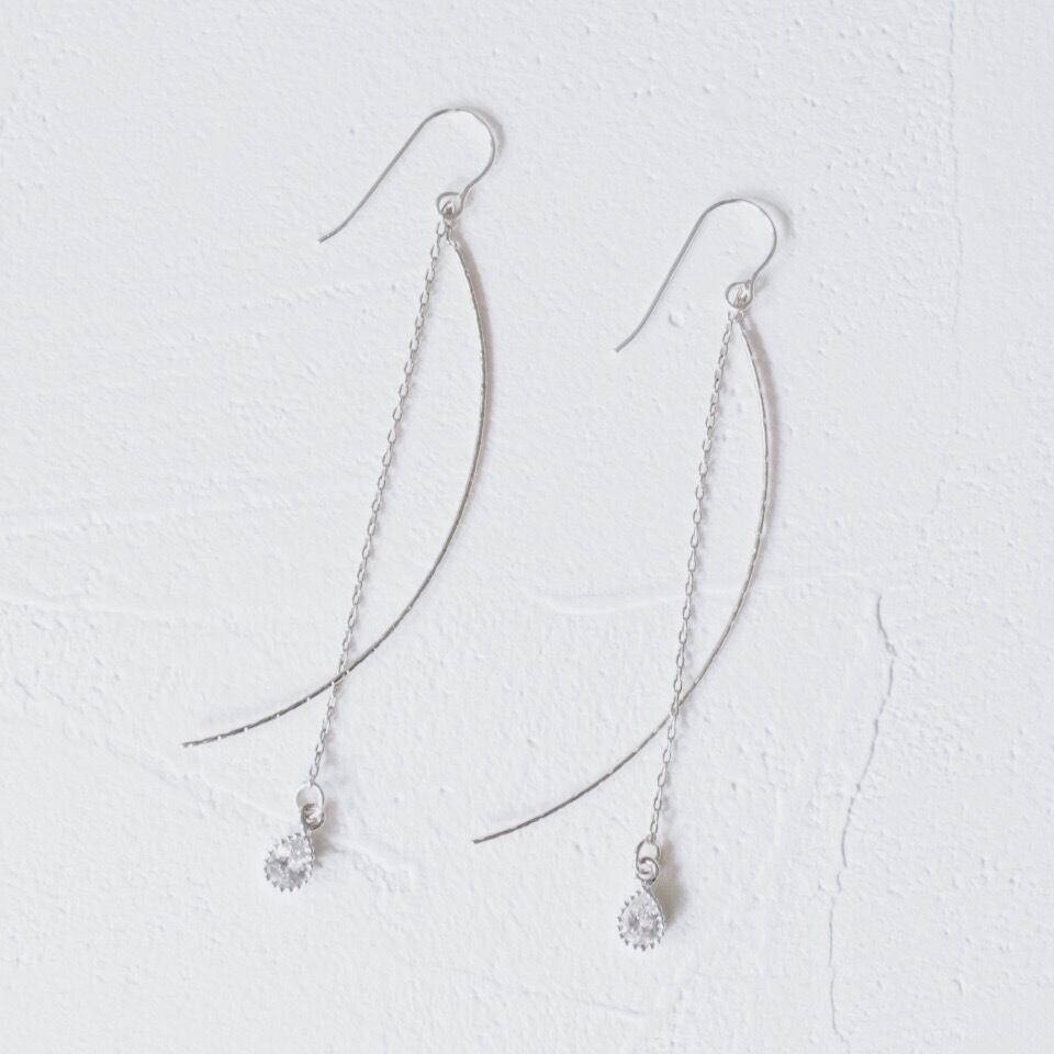 シンプルなジルコニアの一粒チェーンピアス。