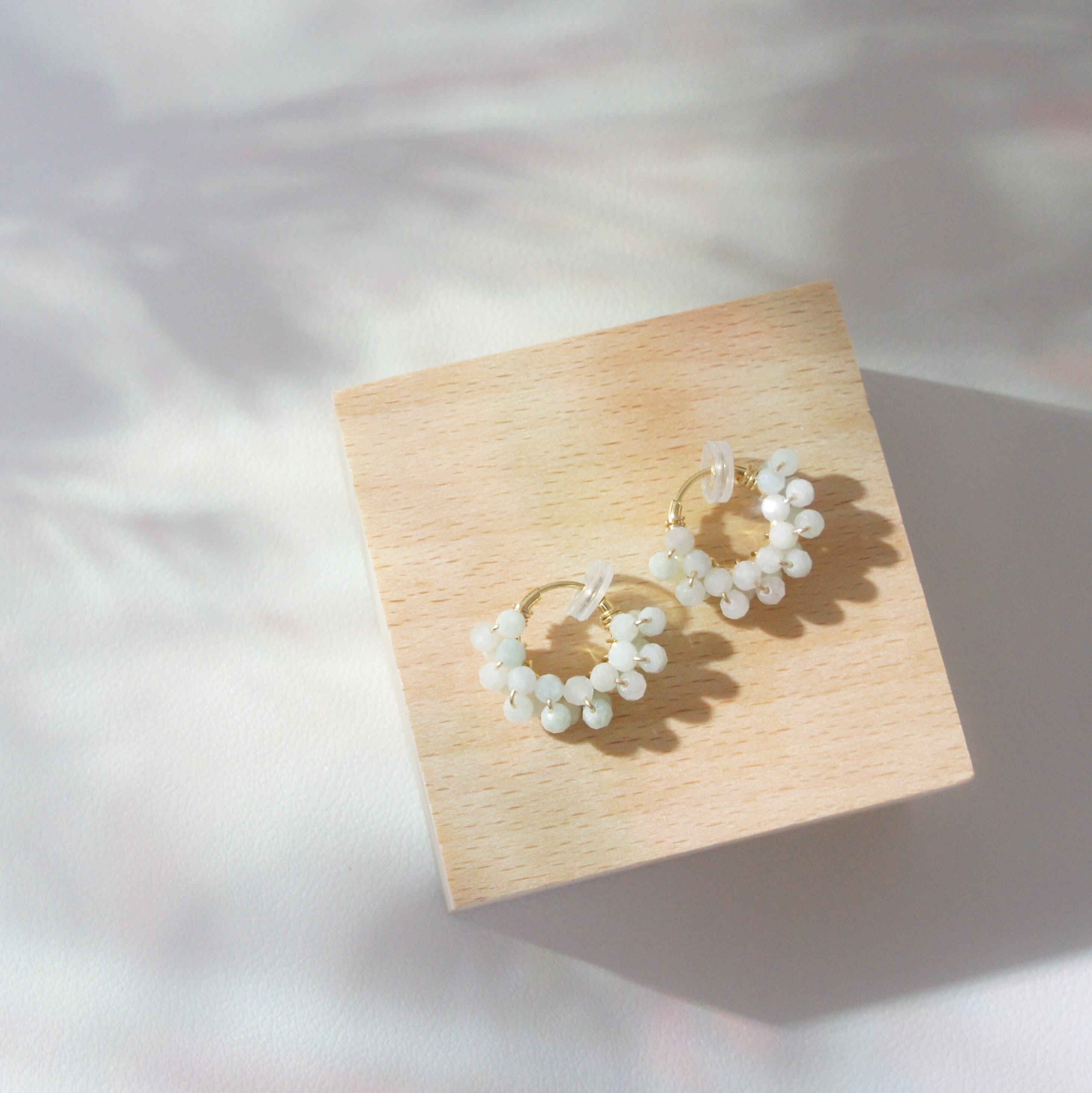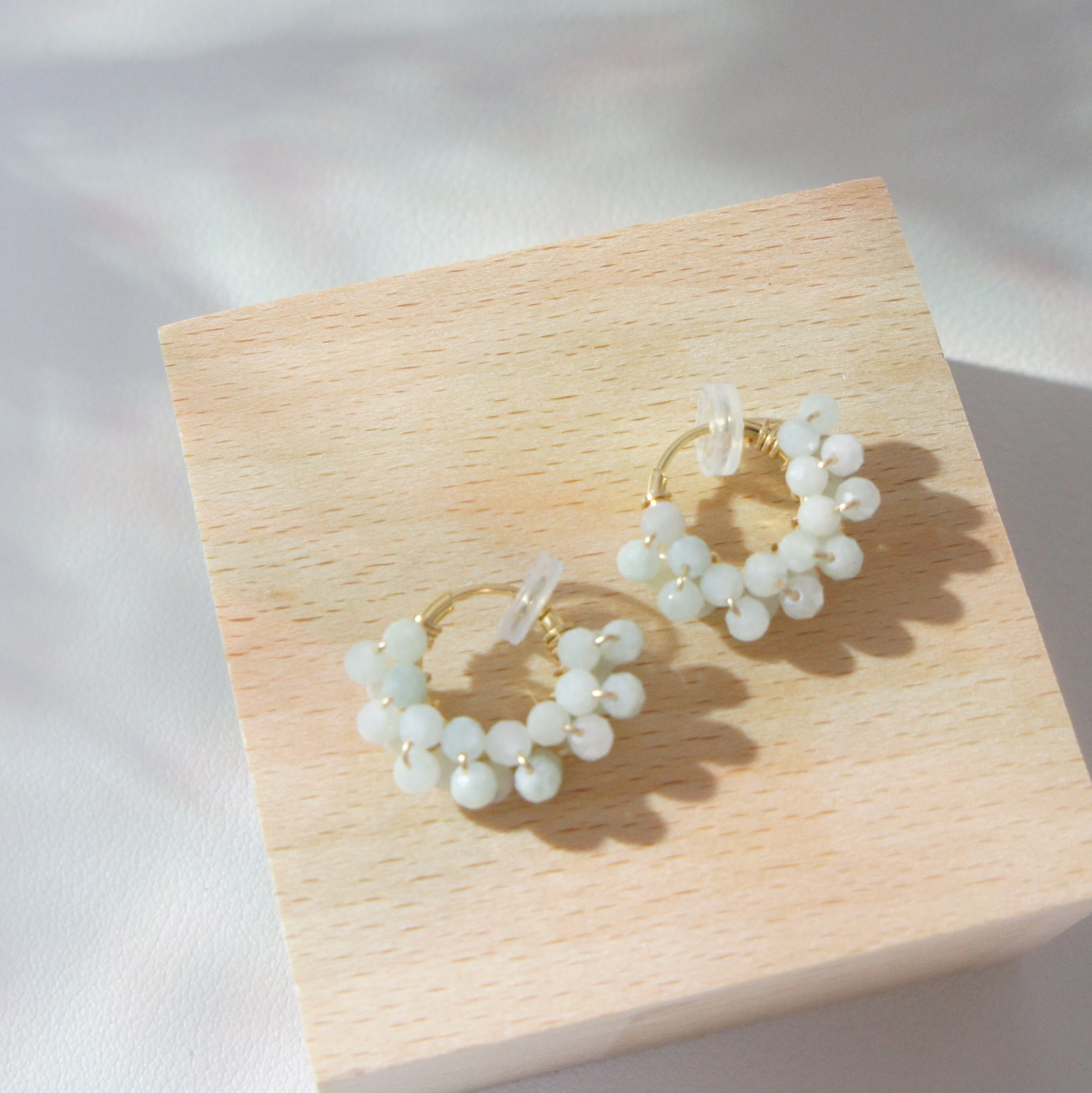 ヒスイを巻き付けたフープイヤリング。