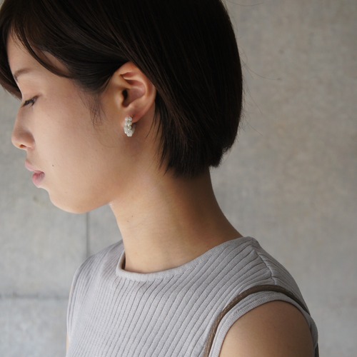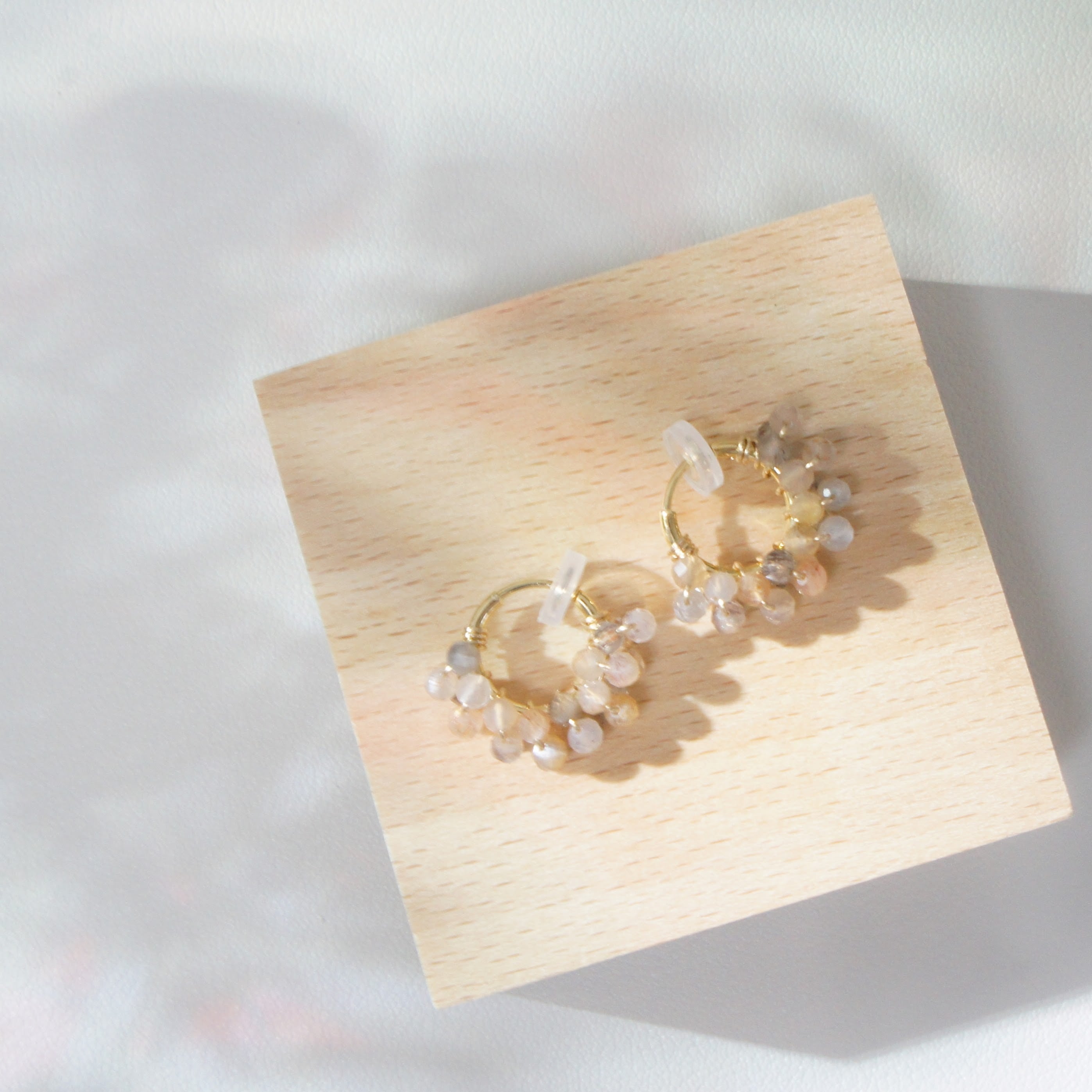 ムーンストーンを巻き付けたフープイヤリング。