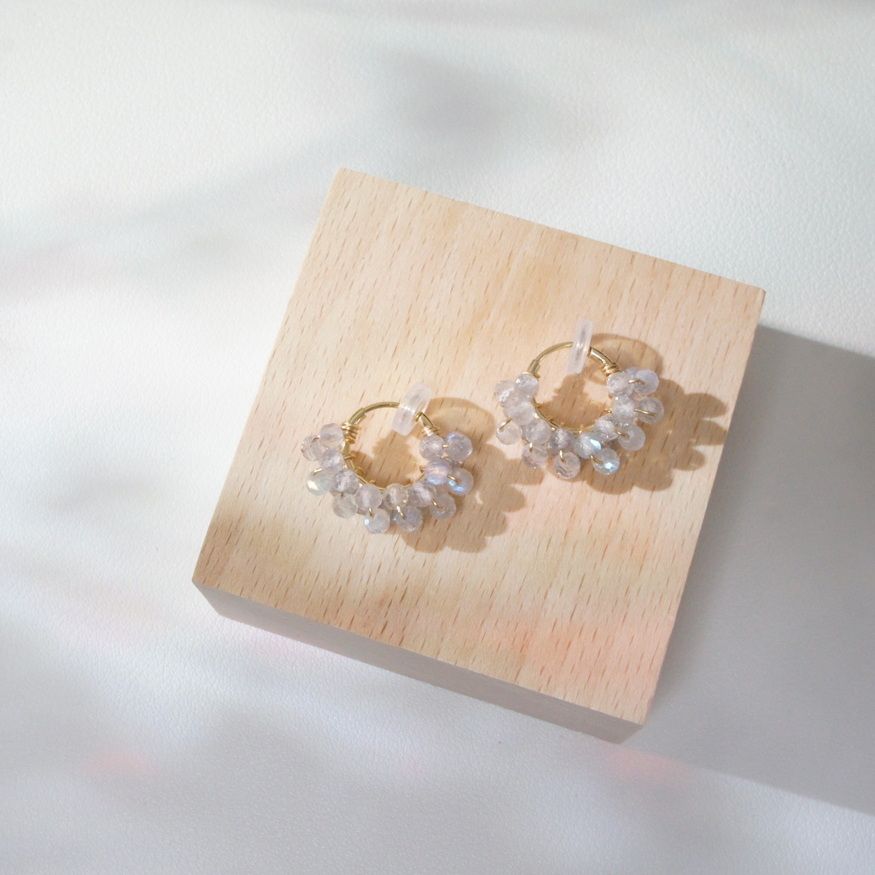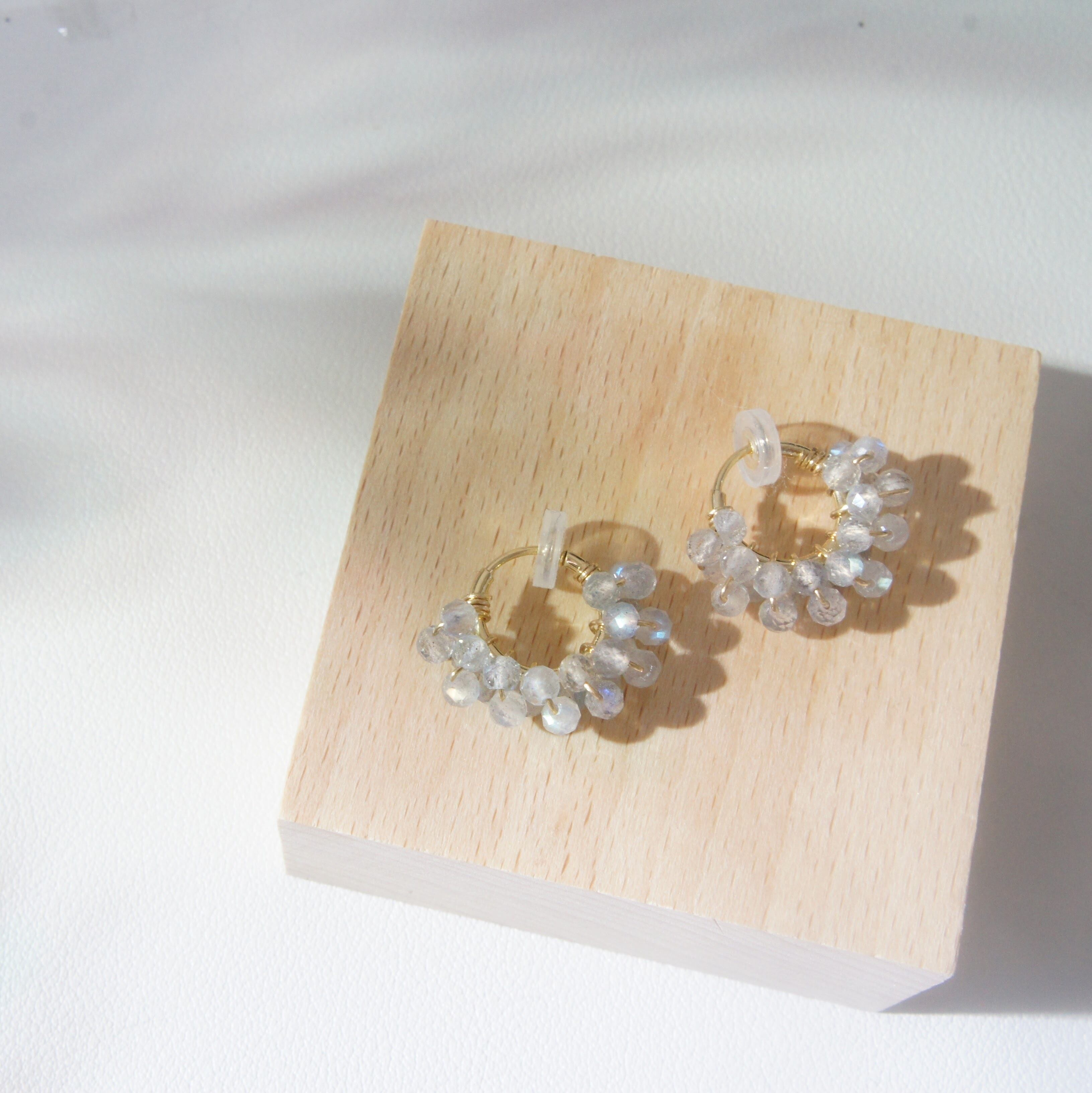 ラブラドライトを巻き付けたフープイヤリング。