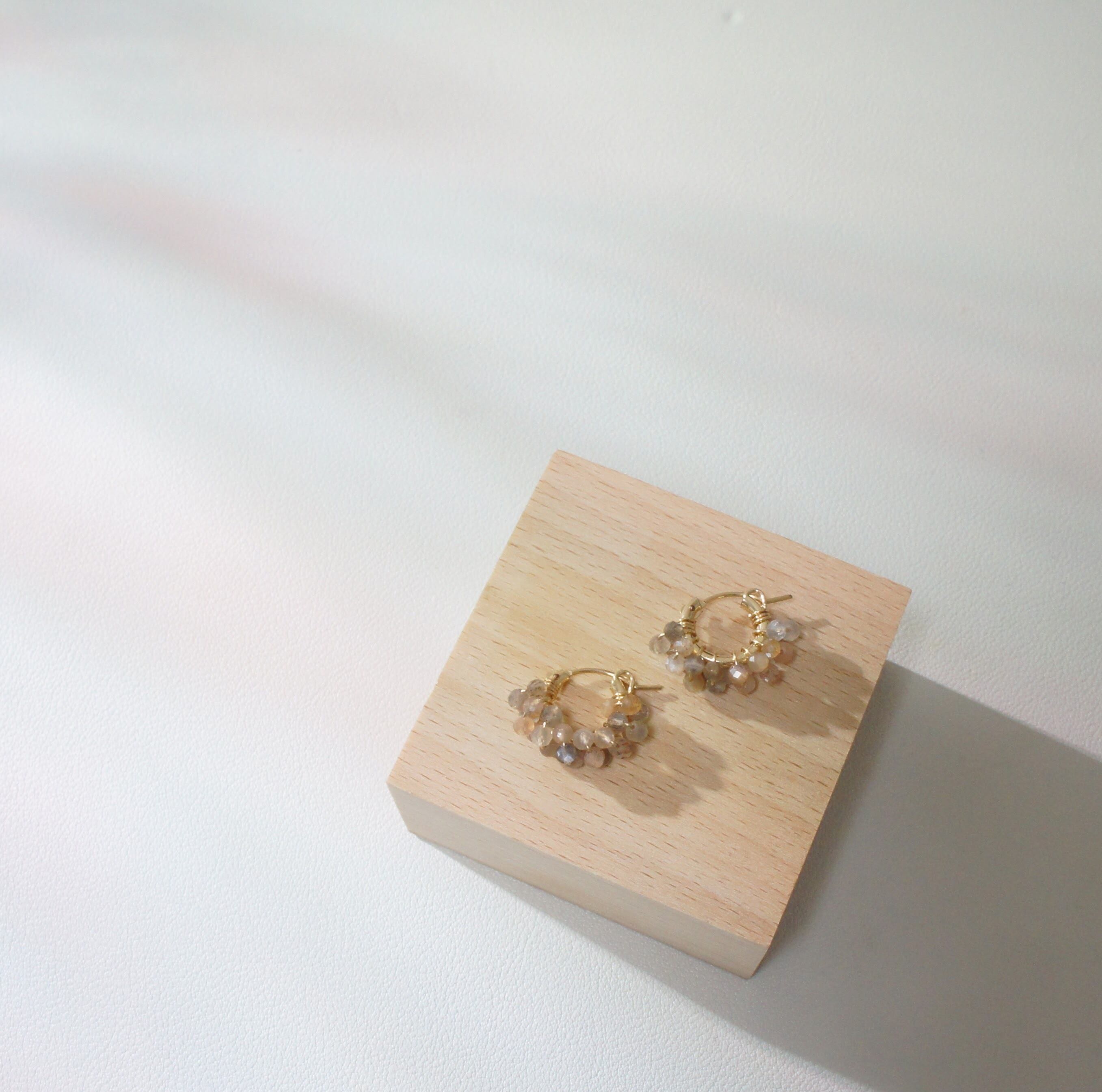 ムーンストーンを巻き付けたフープピアス。