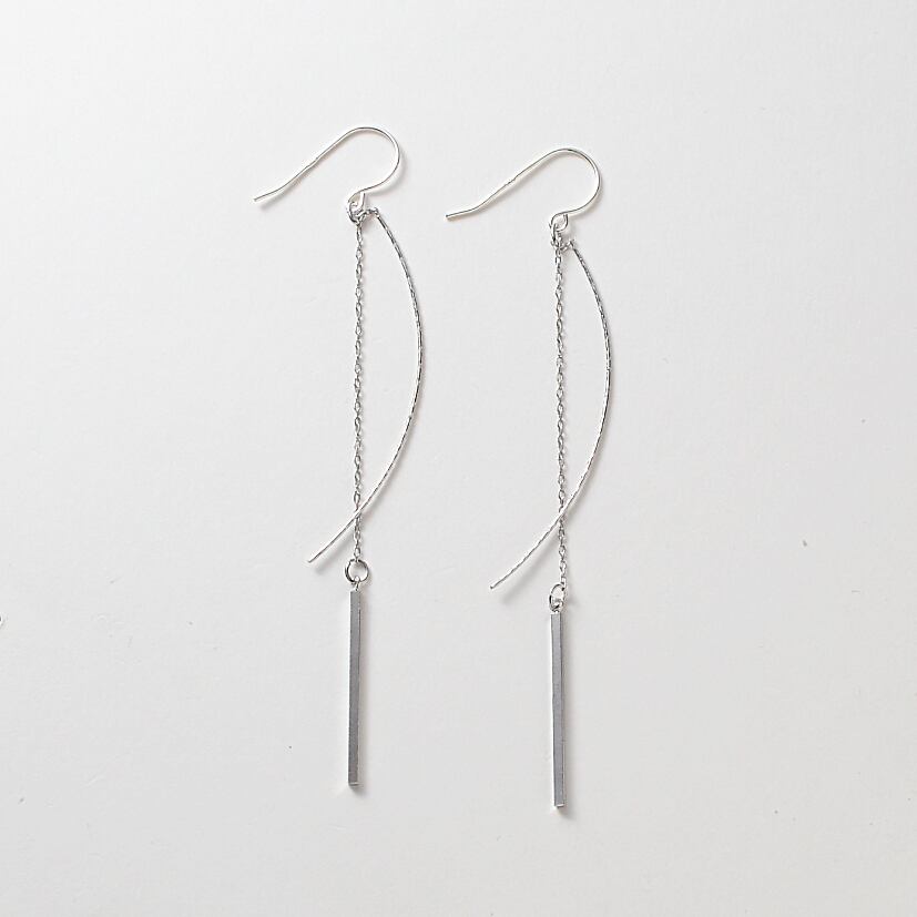 ヌーディなシルバーカラーのバーが揺れる、お洒落なアメリカンピアス。