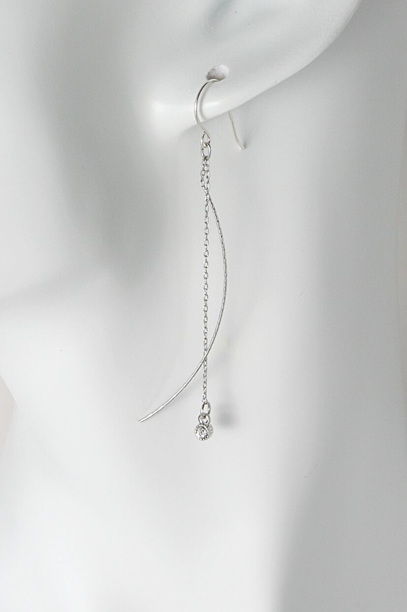 シンプルなジルコニアの一粒チェーンピアス。