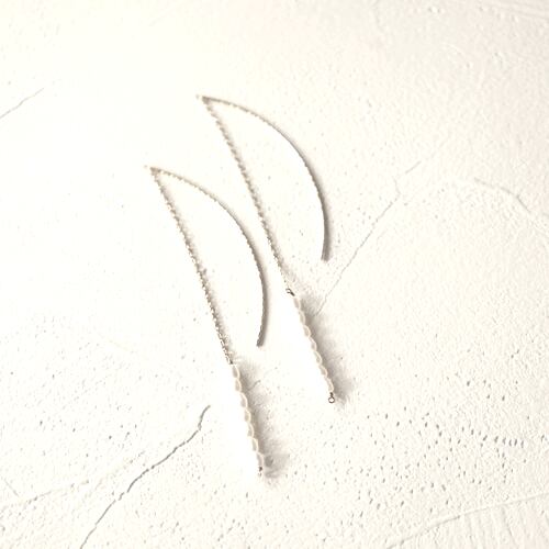 極細の美しい淡水パールを連ねたアメリカンピアス。