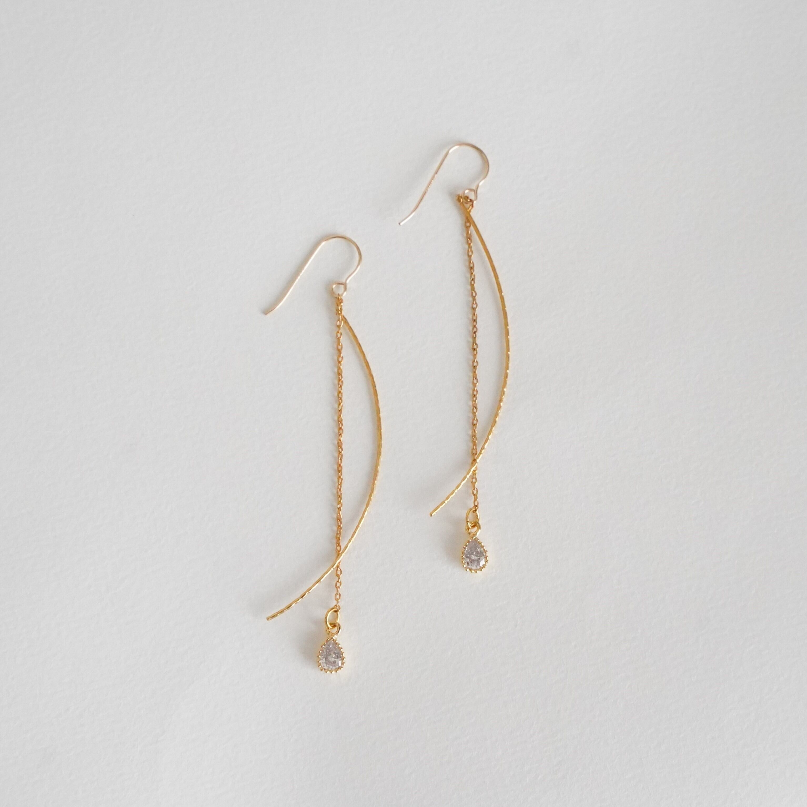シンプルなジルコニアの一粒チェーンピアス。